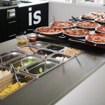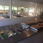 Serveres på buffeten. Der serveres hver aften et varmt måltid, inkl. salatbar.